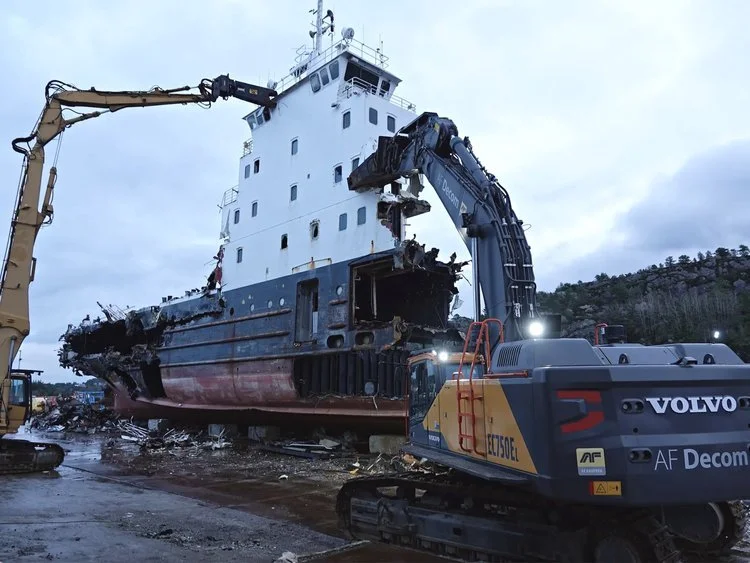 To upcycle the steel, pieces are cut out from the car deck and transported to our regional steel production partners around Bergen.